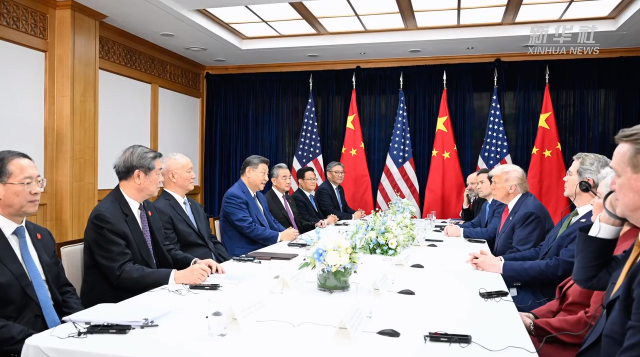 10月30日至11月1日,習(xí)近平主席赴韓國(guó)出席亞太經(jīng)合組織第三十二次領(lǐng)導(dǎo)人非正式會(huì)議并對(duì)韓國(guó)進(jìn)行國(guó)事訪問。抵達(dá)韓國(guó)首日,習(xí)近平主席在釜山同美國(guó)總統(tǒng)特朗普舉行會(huì)晤。